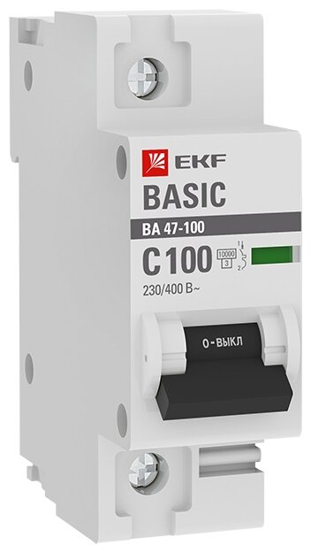 Автоматический выключатель 1P 100А (C) 10kA ВА 47-100 Basic EKF (mcb47100-1-100C-bas)
