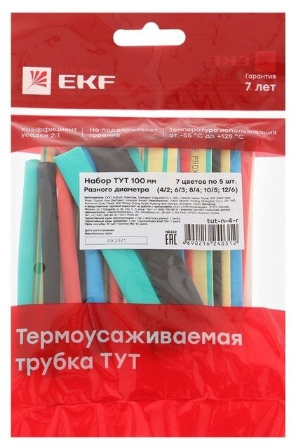 На сегодняшний день товар «Набор ТУТ: 7 цветов по 5шт. Разного диаметра (4/2; 6/3; 8/4; 10/5; 12/6) 100мм. PROxima EKF TUT-N-4-R» можно купить с кешбеком в 2 магазинах: xcom-shop, Яндекс.Маркет