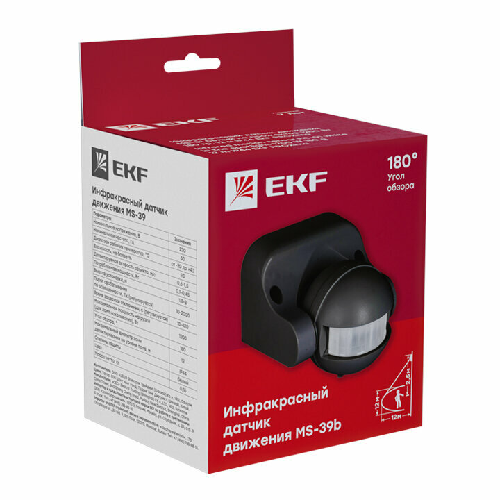 ИК датчик движения наст. 1200Вт 180гр. до 12м IP44 MS-39b черный PROxima EKF MS-39b PROxima