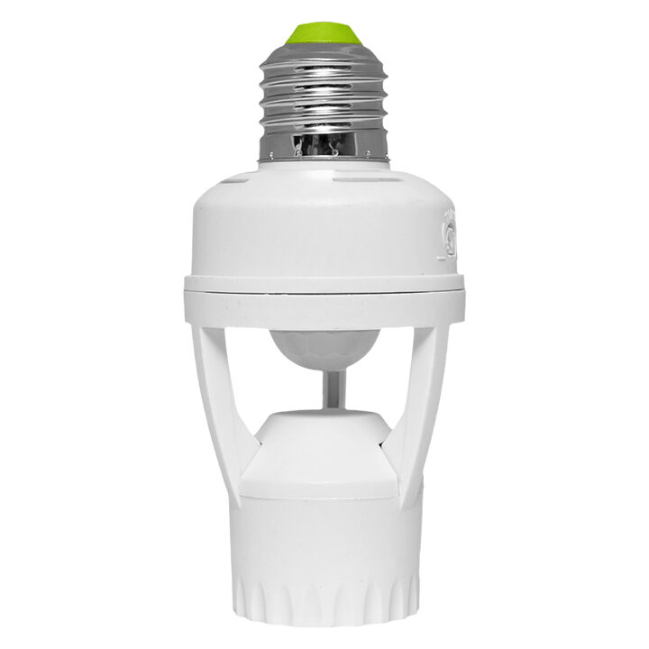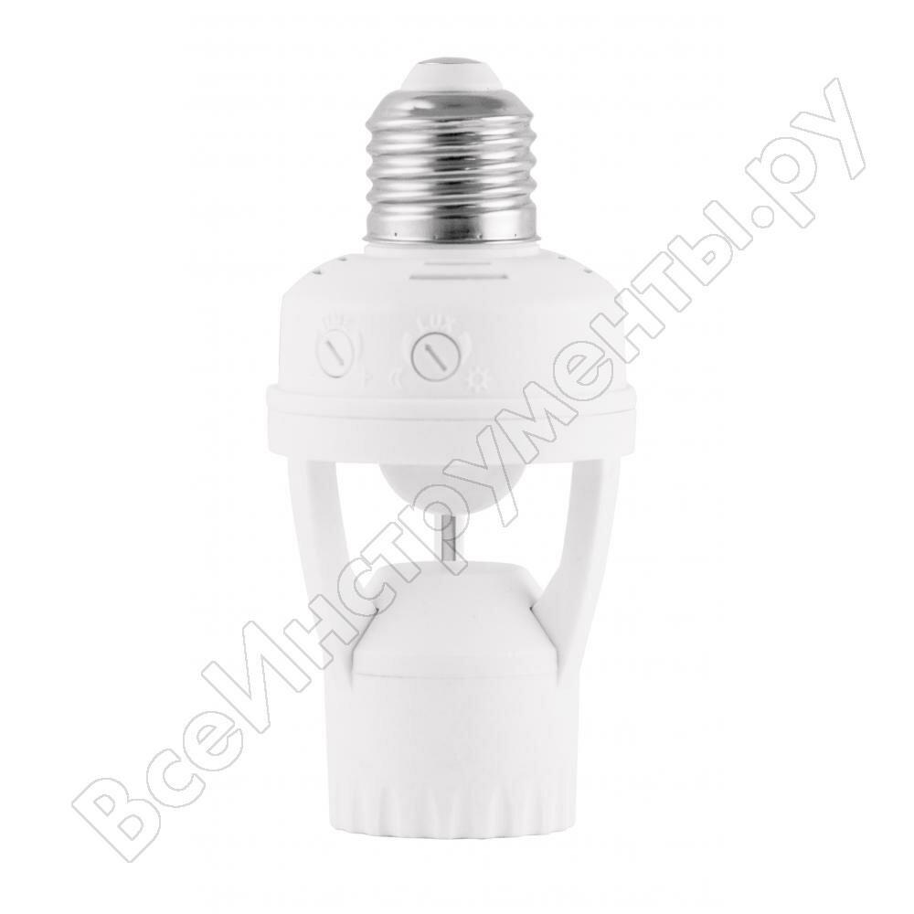 ОПИСАНИЕ. Датчик движения инфракрасный E27 предназначен для экономии электроэнергии за счет автоматического включения/выключения лампы с цоколем E27. Датчик реагирует на движение людей и других объектов в зоне действия сенсора, принцип работы датчика основан на отслеживании уровня ИК-излучения в поле зрения. Датчик E27 вкручивается в патрон, далее в датчик вкручивается лампа. Сенсор датчика должен быть направлен в сторону пола. Алгоритм работы: при возникновении движения в поле зрения датчика лампа включается (макс. мощность 60Вт). После этого лампа остается включенной в течение заданного времени (от 10 сек. до 5 минут, время настраивается) и выключается. Дополнительно датчик имеет функцию контроля освещенности. Если освещенность в зоне детекции выше заданного уровня (настраивается в диапазоне от 10 до 2000 лк), то лампа включаться не будет, что позволяет дополнительно экономить электроэнергию в дневное время. ПРЕИМУЩЕСТВА. Качественный ABS-пластик изделий. Быстрый доступ к регулировкам параметров работы изделия. Возможность встраиваемого либо наружного монтажа. Схема подключения указана на корпусе изделий. Регулировка угла наклона и направления датчика. Герметичные вводы для провода. Удобное подключение проводников. ПРИМЕНЕНИЕ. Экономия электроэнергии в зависимости от уровня освещенности. Автоматическое управление освещением и бытовыми приборами. Городская и частная осветительная сеть. Жилой сектор. Различные объекты строительства и инфраструктуры.