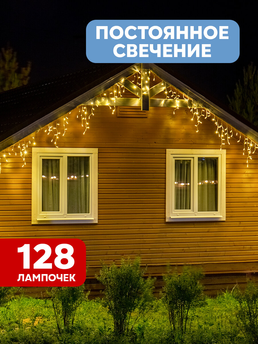Гирлянда Айсикл (бахрома) светодиодный 40 х 06 м белый провод КАУЧУК 230 В диоды ТЕПЛЫЙ БЕЛЫЙ 128 LED Neon-Night 255-206 (размер: 400 x 60 см)