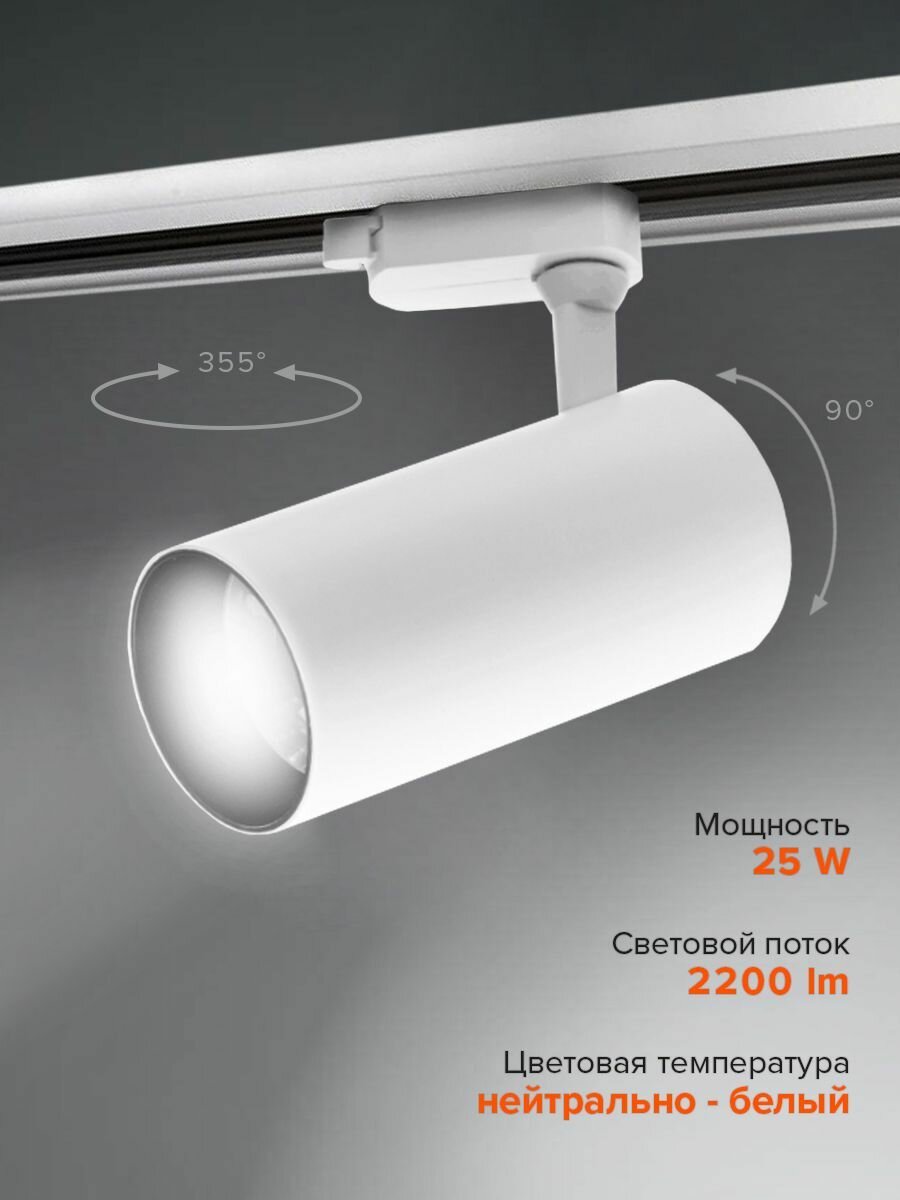 Светильник светодиодный трековый на шинопровод ДПО-25Вт 4000K 2200Лм 24° BL (чёрный) IP40 Jazzway (5015203)