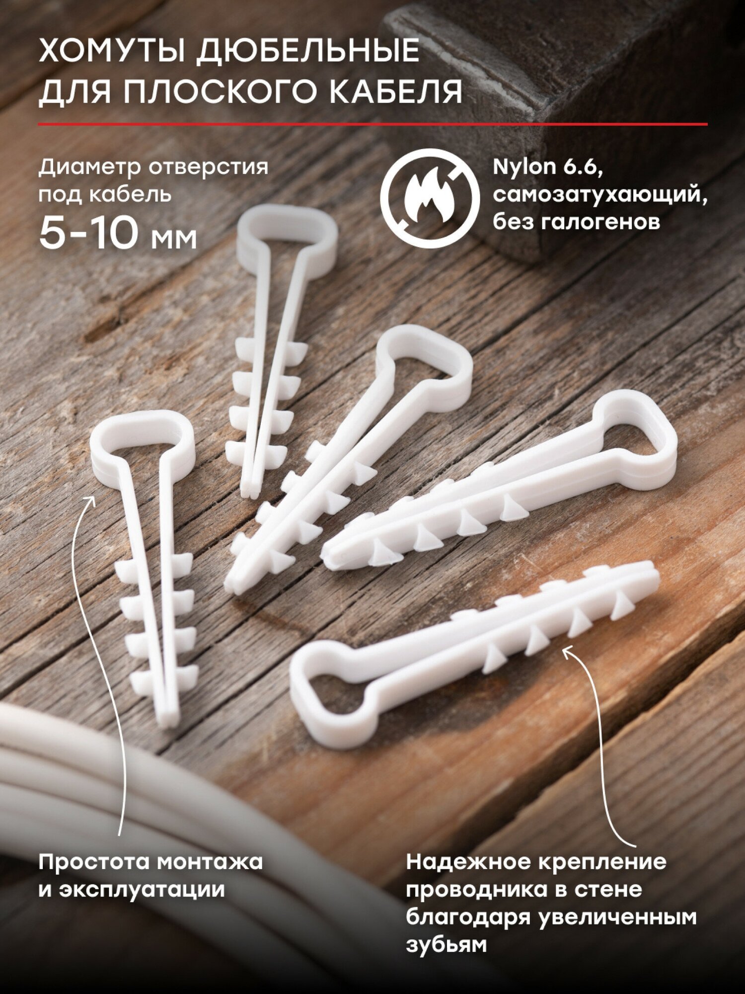 plc-cd1-5x10w Дюбель-хомут (5х10 мм) для плоского кабеля белый (100 шт.) PROxima EKF