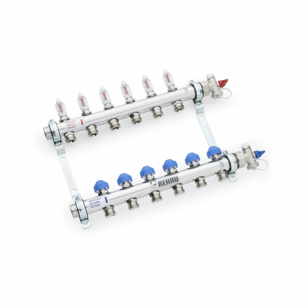 HKV-D 12080211002 Коллекторная группа (1" НР 2 x 3/4" НР расходометры ручные вентили нержавеющая сталь) REHAU