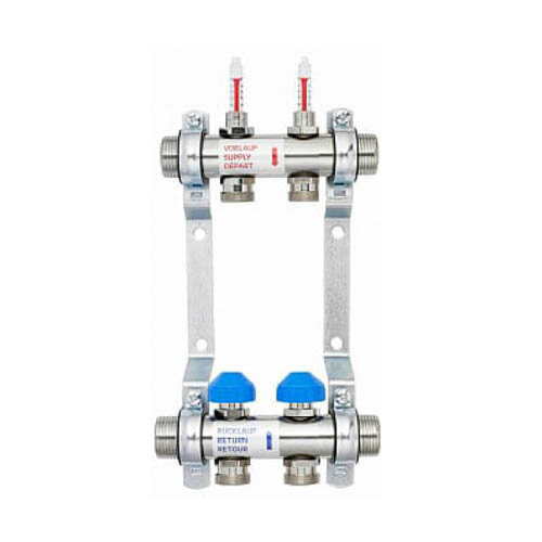 2 распределительные трубы 1" для подачи и отвода теплоносителя с возможностью подключения с обеих сторон;