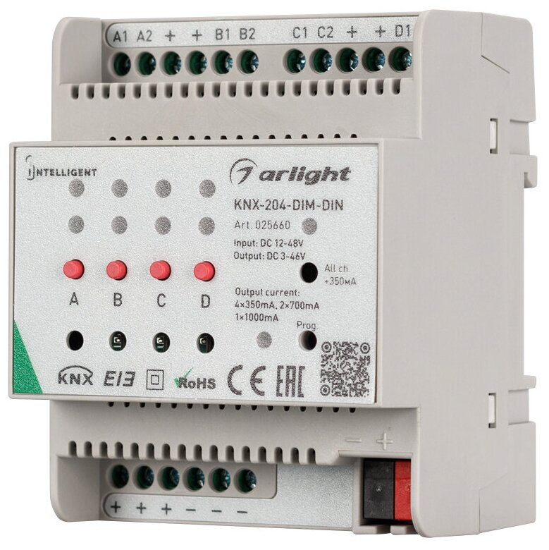 025660 Диммер KNX-204-DIM-DIN (12-48V 8x0.35/4x0.7/2x1A) Arlight