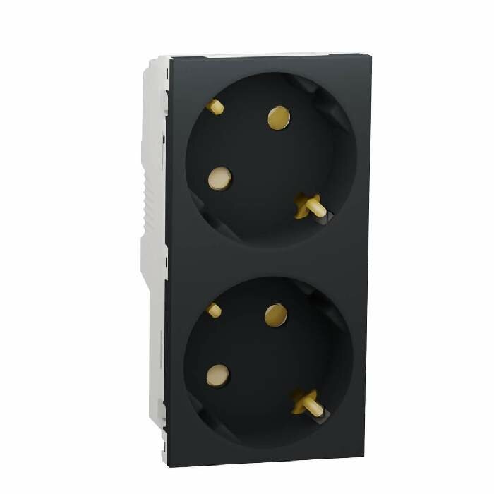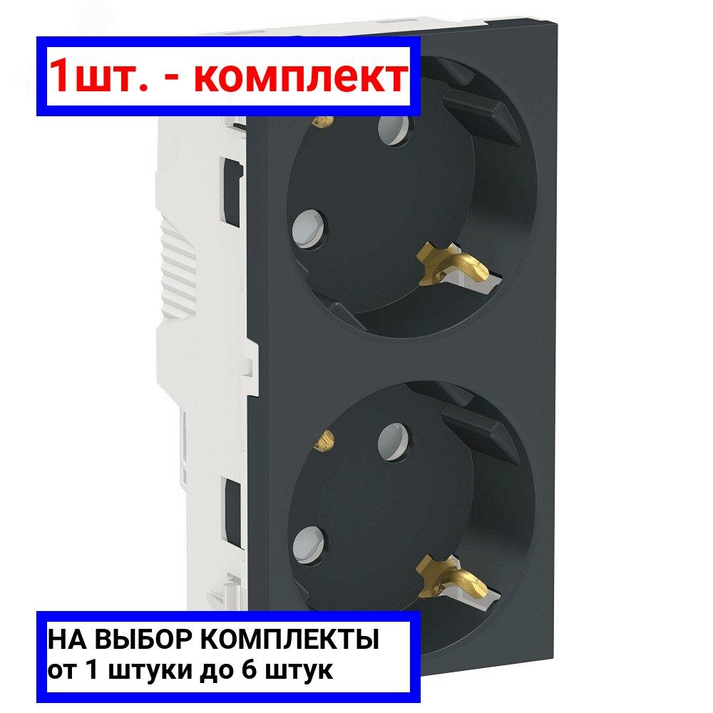 Unica New NU306754A Розетка с заземляющим контактом (16 А 4 модуль винт. зажимы под рамку шторки скрытая установка антрацит) Упаковка (10 шт.) Schneider Electric