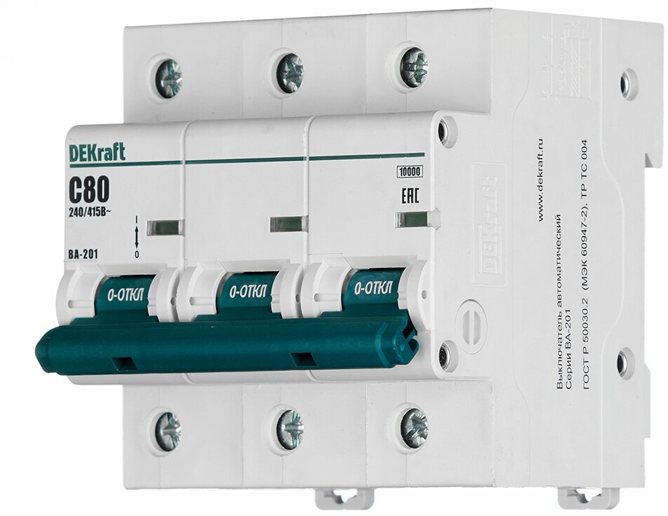 ВА-201 13027DEK Автоматический выключатель трехполюсный 125А (10 кА C) Упаковка (4 шт.) DEKraft