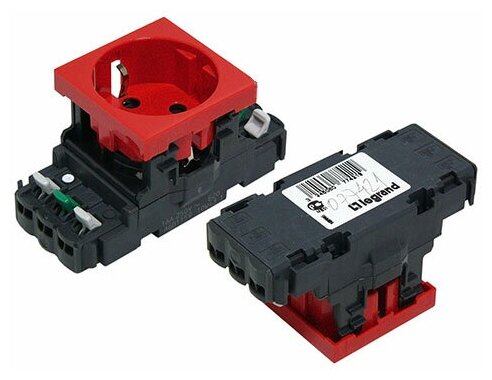 Mosaic 077421 Розетка с заземляющим контактом (16 А под рамку шторки красная) Упаковка (10 шт.) Legrand