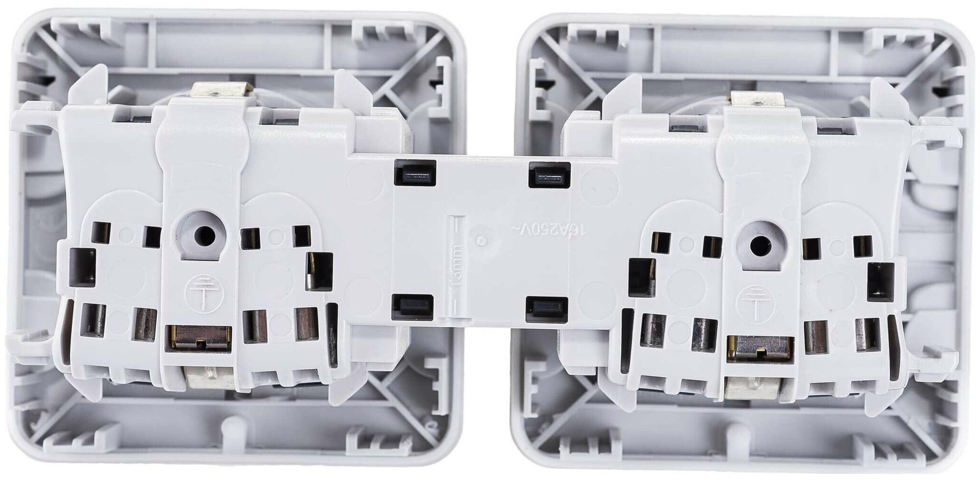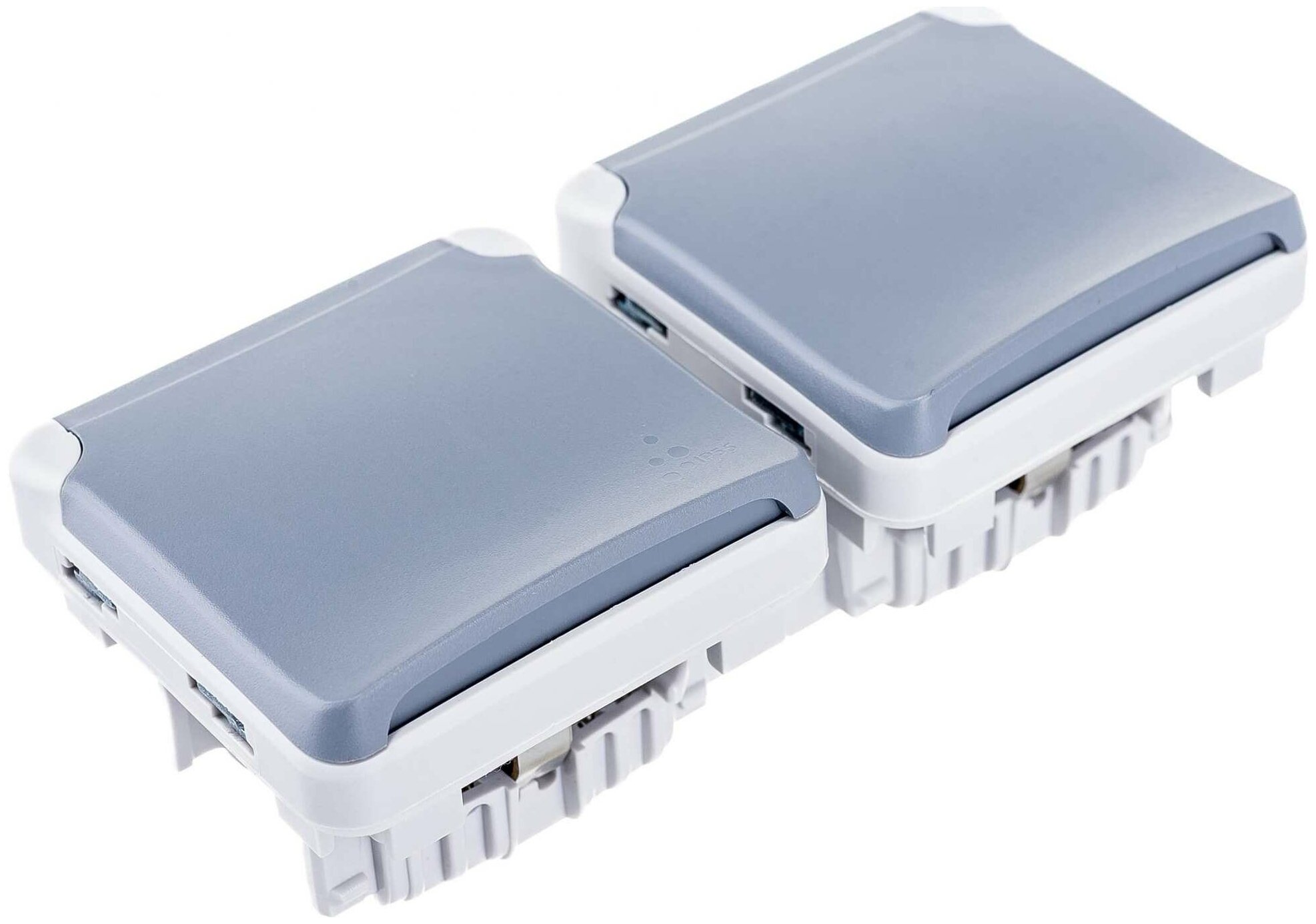 Устанавливаются в двойные накладные коробки или в суппорты с рамкой для встроенного монтажа.