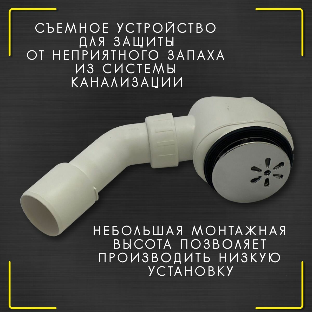 * Комплектация:* съемное устройство для защиты от неприятного запаха из системы канализации, сливное колено 45°, декоративная накладка сливного отверстия.