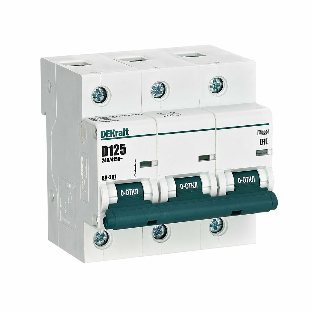 ВА-201 13031DEK Автоматический выключатель трехполюсный 125А (10 кА D) Упаковка (4 шт.) DEKraft