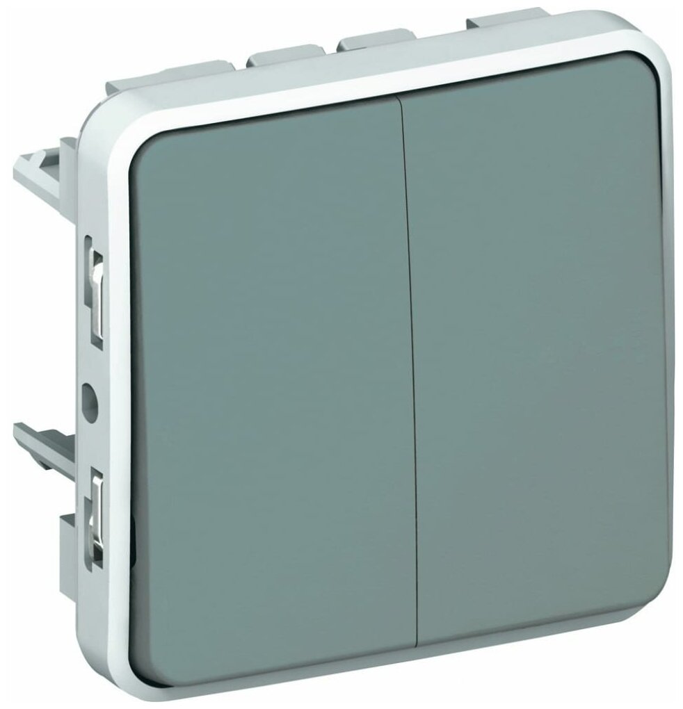 Plexo 069525 Переключатель двухклавишный проходной (10 А под рамку с/у серый) Legrand