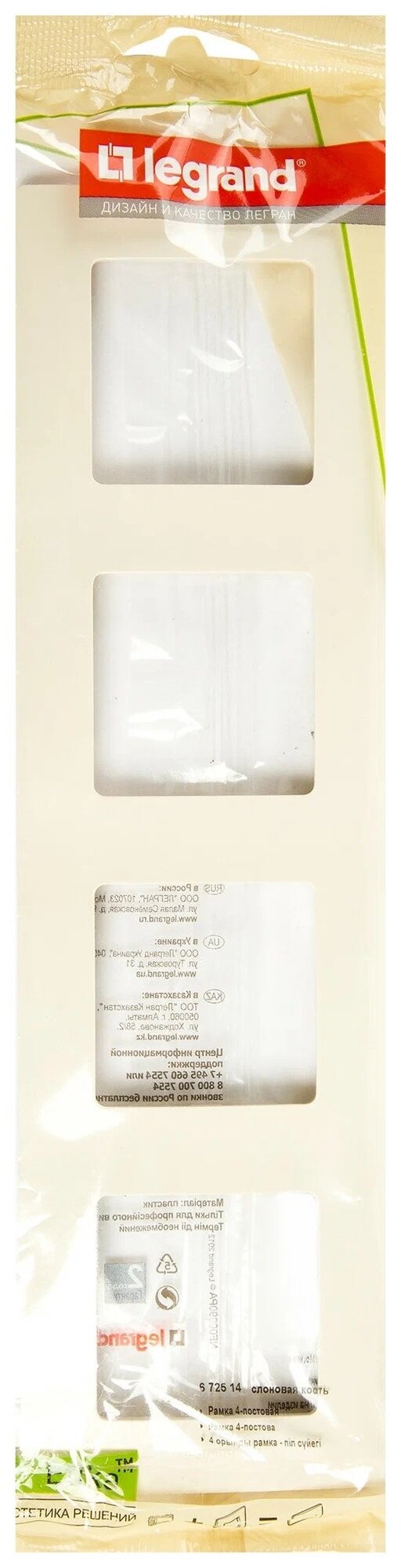 Etika 672514 Рамка 4-постовая (слоновая кость) Legrand