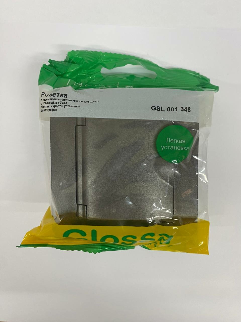 Glossa GSL001346 Розетка одинарная с заземляющим контактом (16 А IP20 под рамку скрытая установка шторки крышка графит) Schneider Electric GSL001346 Glossa