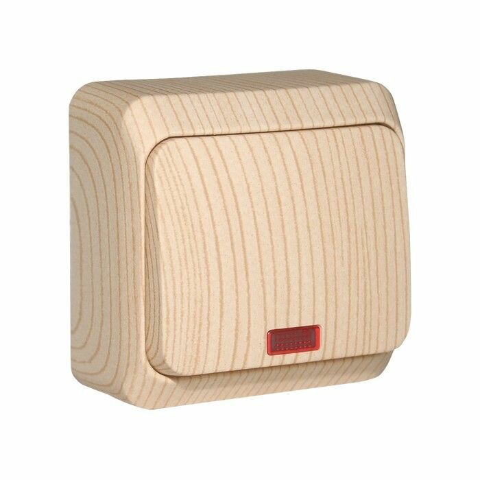 Этюд BA10-005D Выключатель одноклавишный с подсветкой (10 А в сборе открытая установка сосна) Schneider Electric BA10-005D Этюд (размер: 61 x 61 x 35мм)