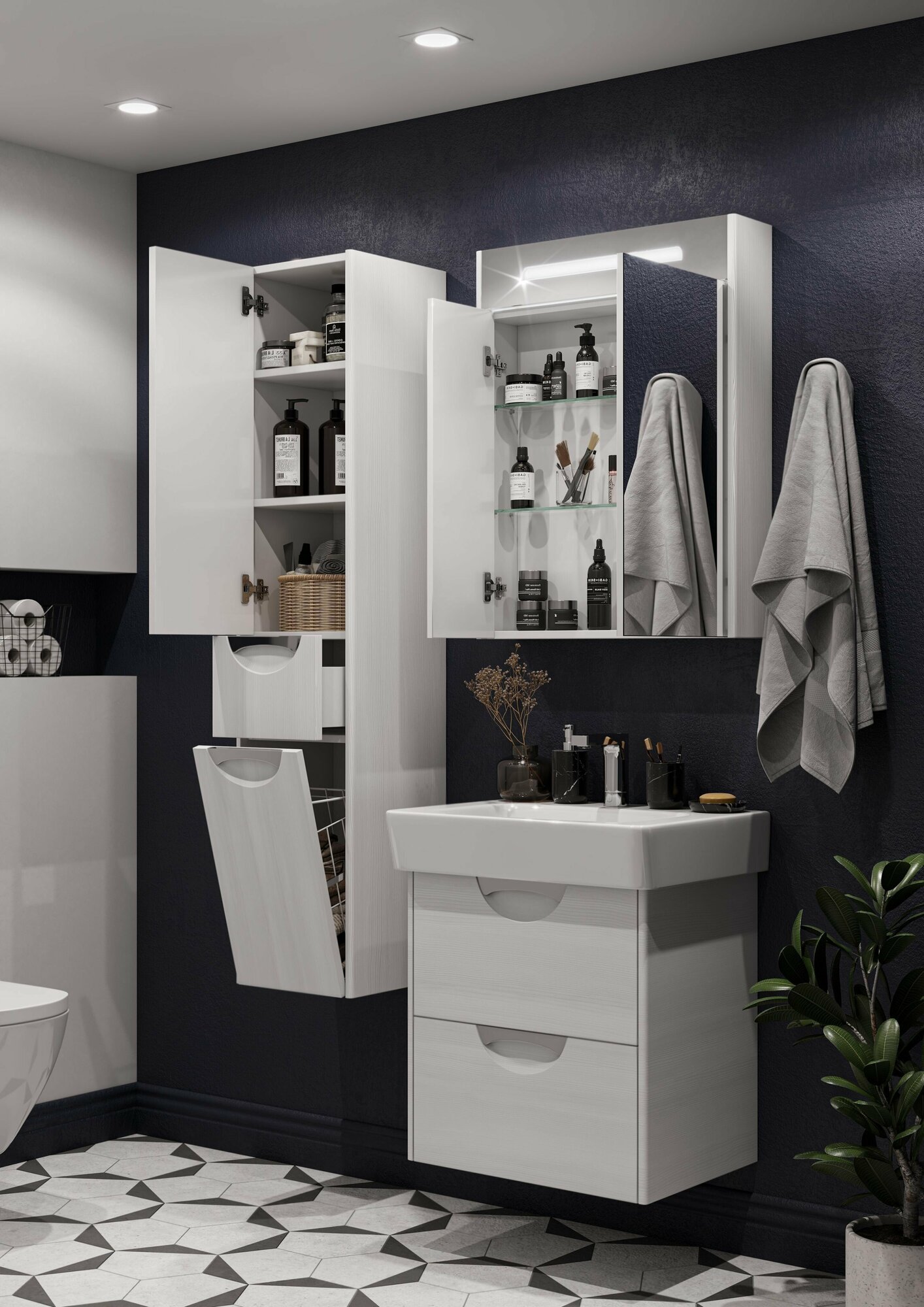- Фасад и корпус пенала выполнены из МДФ/ЛДСП. Материал покрыт пленкой импортного производства (Италия, Германия). Безупречная фрезеровка фасада и нанесение пленки гарантирует высокую влагостойкость и прочность.