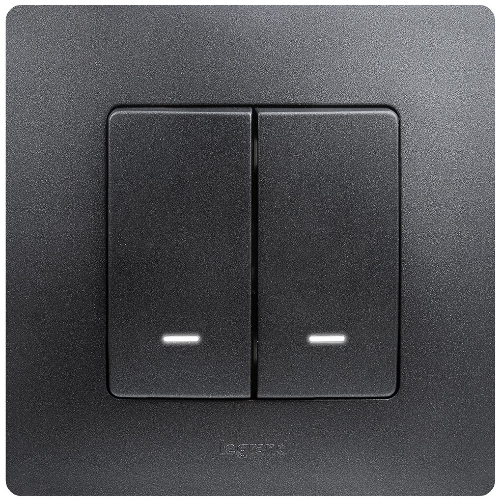 Etika 672604 Выключатель двухклавишный (10 А под рамку подсветка скрытая установка антрацит) Legrand