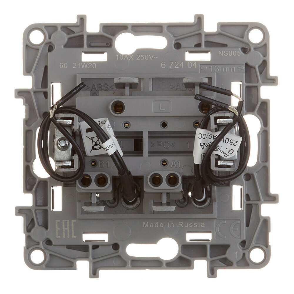 Etika 672404 Выключатель двухклавишный (10 А под рамку подсветка скрытая установка алюминий) Legrand
