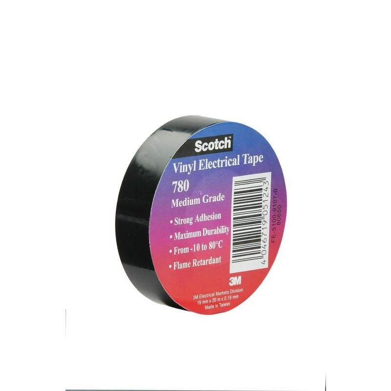Изоляционная лента ПВХ Scotch ® 780 — изоляционная лента ПВХ общего применения толщиной 0,178 мм. Лента применяется внутри и вне помещений при температуре от -10 до +80 °С. Не поддерживает горение, устойчива к УФ, влаге и химикатам. Для первичной изоляции при сращивании и ремонте кабеля, жгутировании проводов.