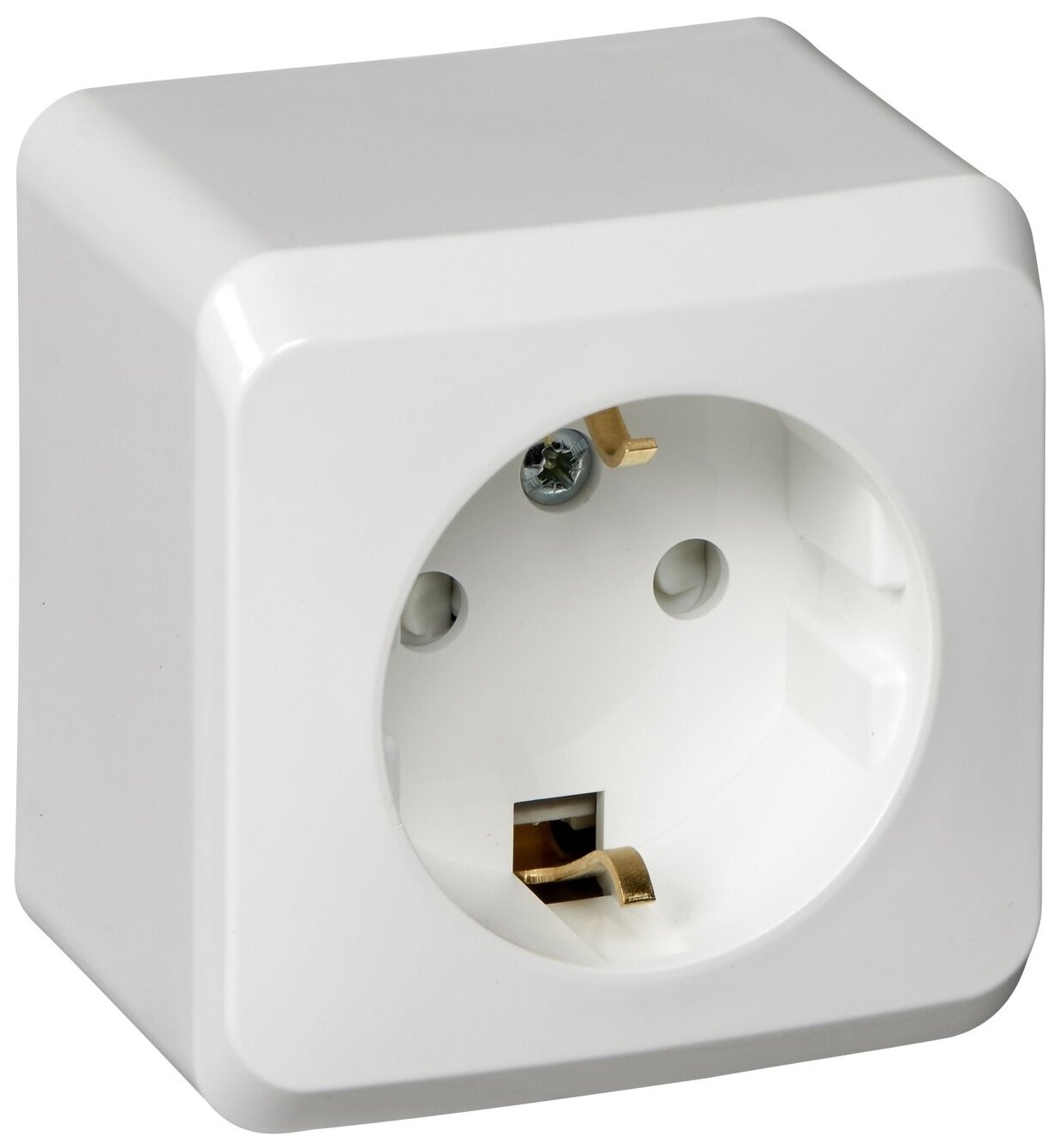 Этюд PA16-004B Розетка одинарная с заземляющим контактом и шторками (16 А в сборе открытая установка белая) Schneider Electric PA16-004B Этюд