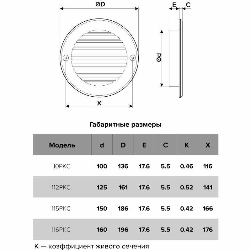 Вентиляционные решетки российского производства от компании ERA серии РКС применяются для подсоединения к круглым воздуховодам и выпускаются с диаметром монтажного фланца 100, 125, 150 и 160 мм. Приборы выполнены в классическом стиле из пластика высокого качества. Приборы поставляются с комплектом крепежных элементов.