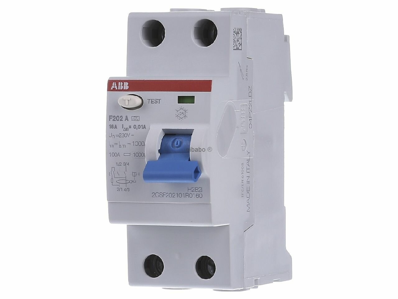 F200 2CSF202101R0160 Выключатель дифференциального тока двухполюсный 16А 10мА (тип А) ABB F202A