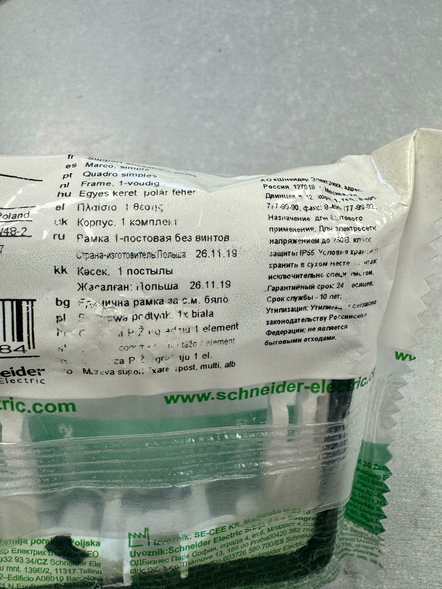 Mureva S MUR39107 Рамка 1-постовая (универсальная IP55 без винтов белая) Упаковка (10 шт.) Schneider Electric