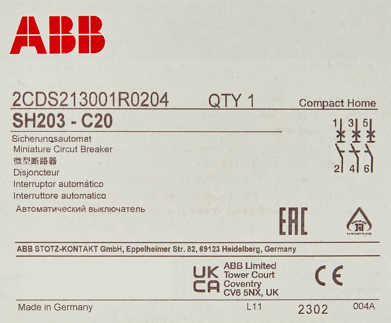 Код производителя: 2CDS213001R0204