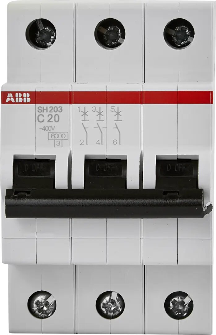 SH200 2CDS213001R0204 Автоматический выключатель трехполюсный 20А (6 кА C) ABB Выключатель авт. 3п SH203 C20 ABB