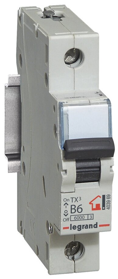 Выключатель автоматический однополюсный Legrand TX3 типа B, рассчитанный на ток нагрузки 6 А и максимальную силу тока (отключательную способность) 6 кА предназначен для защиты электроприборов от поломок при перегрузках электросети или коротком замыкании. Устройство замеряет показатели электрического тока в непрерывном режиме и в случае его превышения срабатывает расцепитель, который размыкает электрическую цепь. Автомат устанавливается в специальных электрощитках в жилых домах, офисных и производственных помещениях.Параметр отключающей способности однополюсного автомата Legrand TX3 (6 кА) означает максимальную силу тока, при которой срабатывает автоматический выключатель. При превышении этого показателя корректная работа автоматики не гарантируется.Для грамотного выбора устройства по отключающей способности необходимо учитывать максимально возможный ток при коротком замыкании. В старых постройках используются приборы на 4.5, либо 6 кА. Для квартиры в новых домах стоит выбрать защитную автоматику на 10 кА. Обратите внимание: несмотря на похожую единицу измерения и одинаковые числовые значения, номинальный ток и отключающая способность – это разные показатели!Автоматические выключатели типа B обладают меньшей чувствительностью, чем относящиеся к типу A. Электромагнитный расцепитель в них срабатывает при превышении номинального тока на 200%, а время срабатывания составляет 0,015 сек. Оборудование этого типа предназначено для установки в линиях, в которые включены розетки, приборы освещения и в других цепях, где пусковое повышение электротока отсутствует, либо имеет минимальное значение.Сделано в Польше.