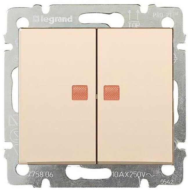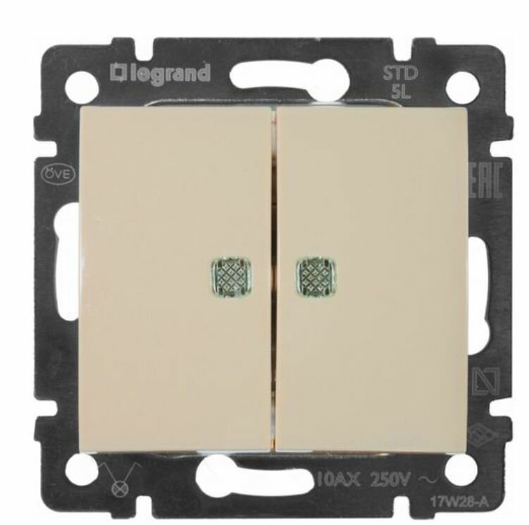 Valena 774328 Выключатель двухклавишный (10 А подсветка под рамку с/у слоновая кость) Legrand