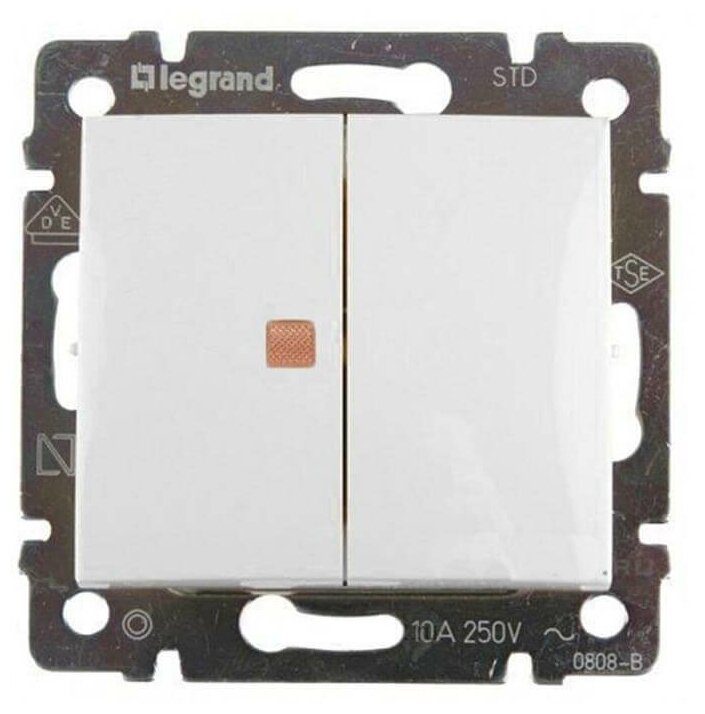 Valena 774445 Выключатель двухклавишный (10 А индикация под рамку с/у белый) Упаковка (10 шт.) Legrand