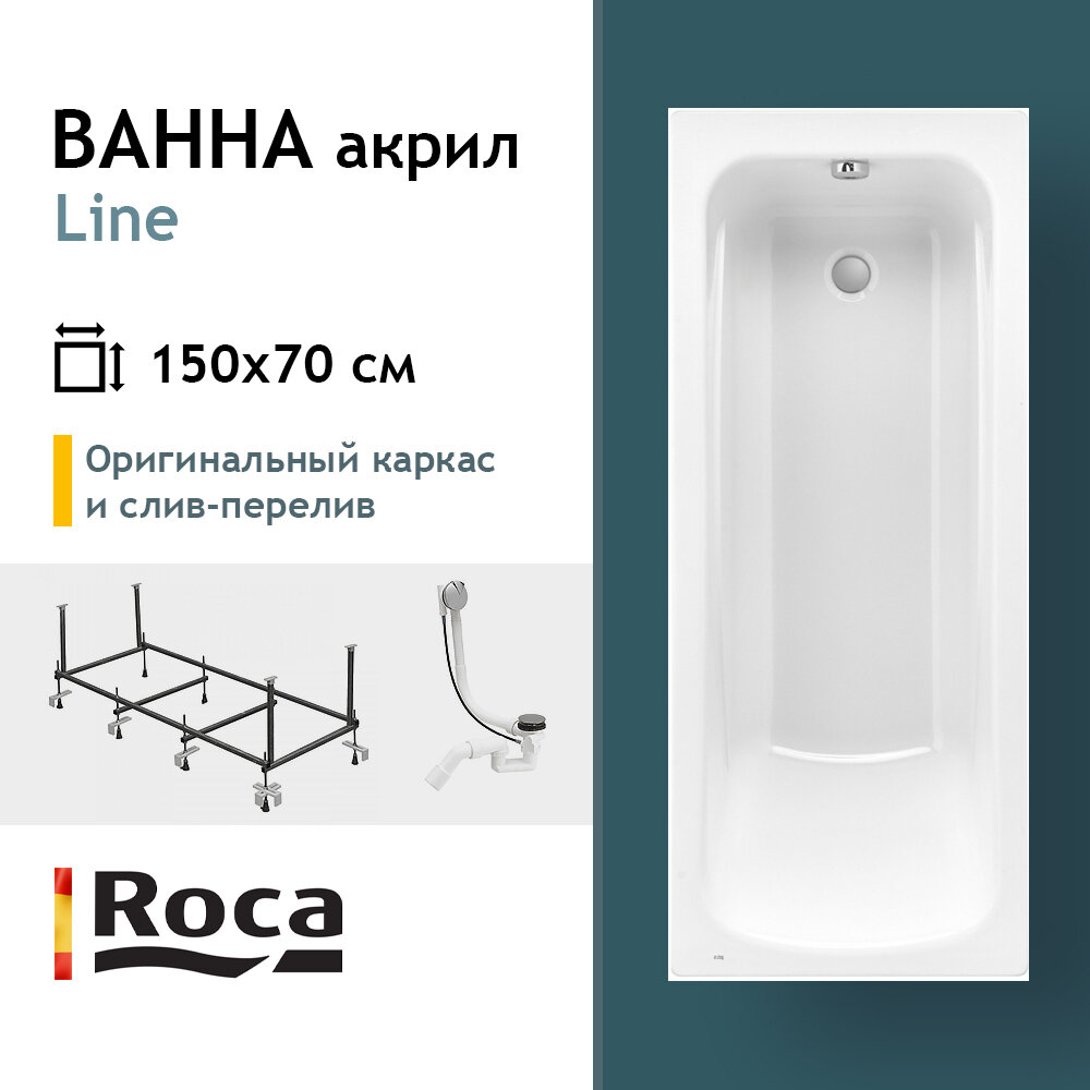 Акриловая ванна Roca Line - это современный дизайн, изящные и органичные формы. Она с легкостью впишется в ванную комнату, оборудованную керамическими изделиями Roca и при этом не займет много места. Ванна Roca Line изготовлена из 100% литьевого акрилового листа марки ALTUGLASS (Франция) толщиной 4мм, усилена армирующим слоем такой же толщины, дно усилено специальной вставкой. Отдельно отметим глубину ванны Roca Line - она составляет 45 см, что больше чем у конкурентов. Так что если Вы ищете акриловую ванну стандартного размера 160 на 70, но поглубже, то эта ванна как раз для Вас. Монтируется ванна на сборный металлический каркас, сделанный из трубы квадратного сечения и окрашенного белой порошковой краской. Кроме того, её можно закрепить к стене, используя специальные крепежи, которые приобретаются отдельно.