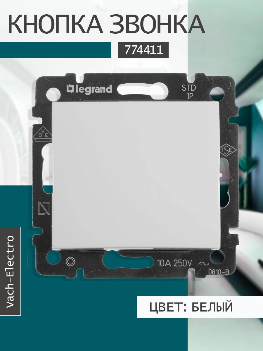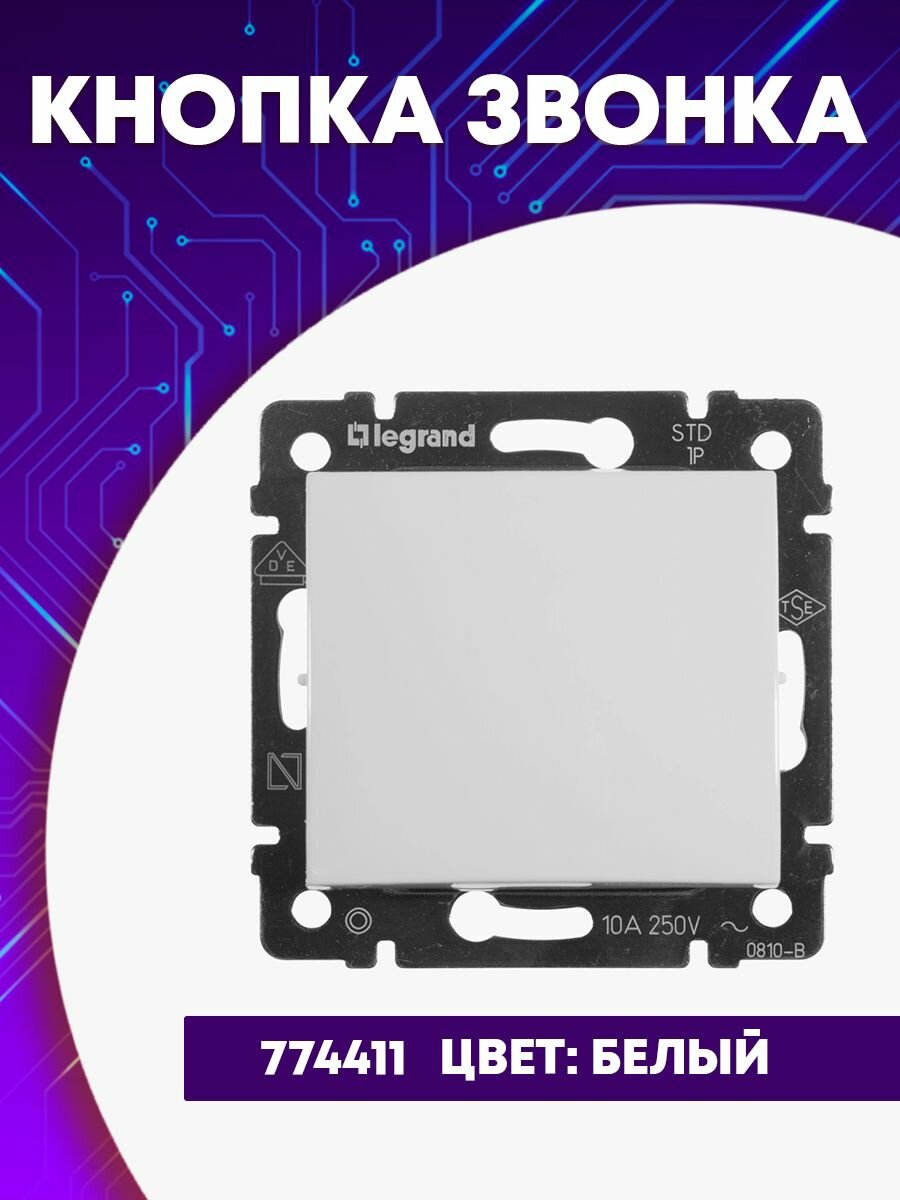 Valena 774411 Выключатель кнопочный (10 А под рамку возм. накладного монтажа с/у белый) Legrand