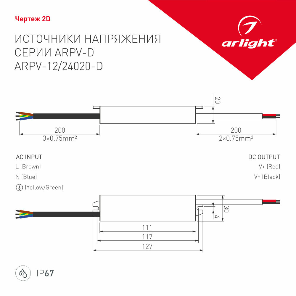 022410 ARPV-24020D (24V 0.83A 20W) блок питания Arlight ARPV 22410