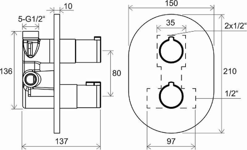 Термостатический смеситель обеспечит стабильную температуры воды и, следовательно, уменьшит потребление энергии на ее обогрев. Термостатический смеситель скрытого монтажа можно комбинировать с другими аксессуарами RAVAK. Для очистки внешней поверхности используйте средство RAVAK Cleaner Chrome. Мы рекомендуем время от времени протягивать блок управления температуры до максимальных положений (в зависимости от жесткости воды), чтобы предотвратить оседание водного камня.