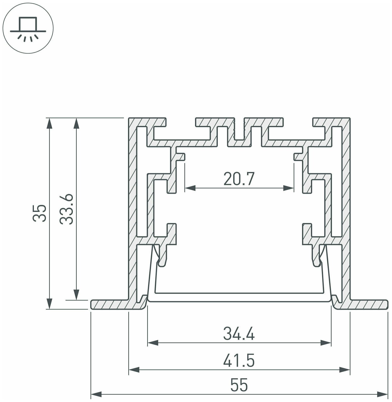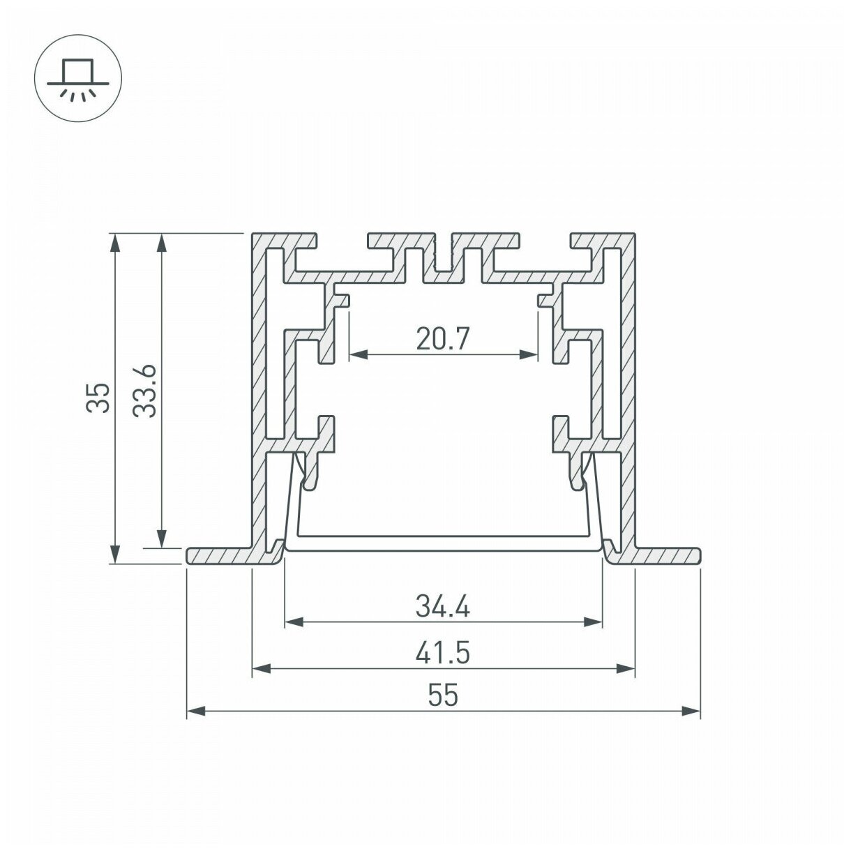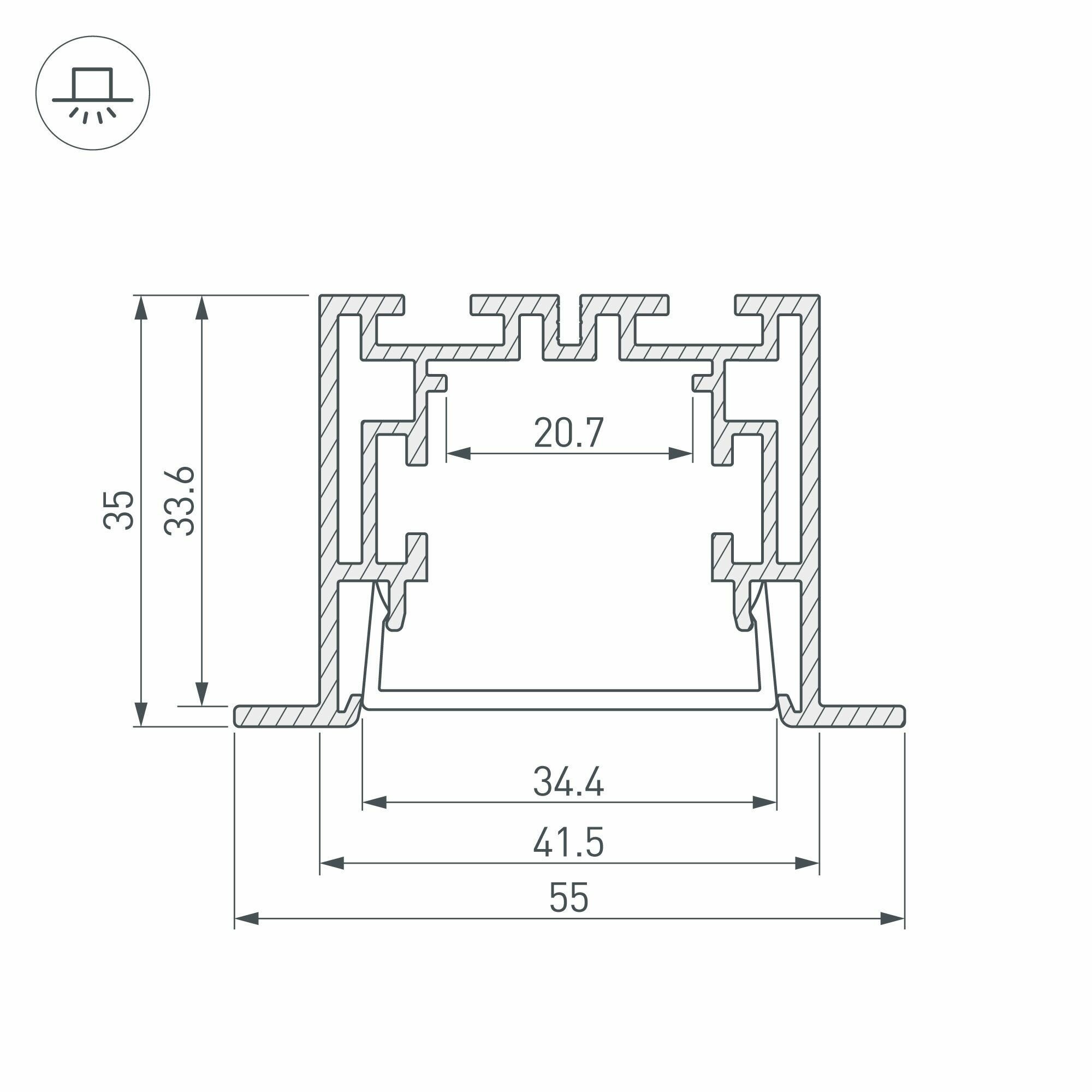 021176 Профиль с экраном S2-LINIA55-F-2500 ANOD+OPAL Arlight