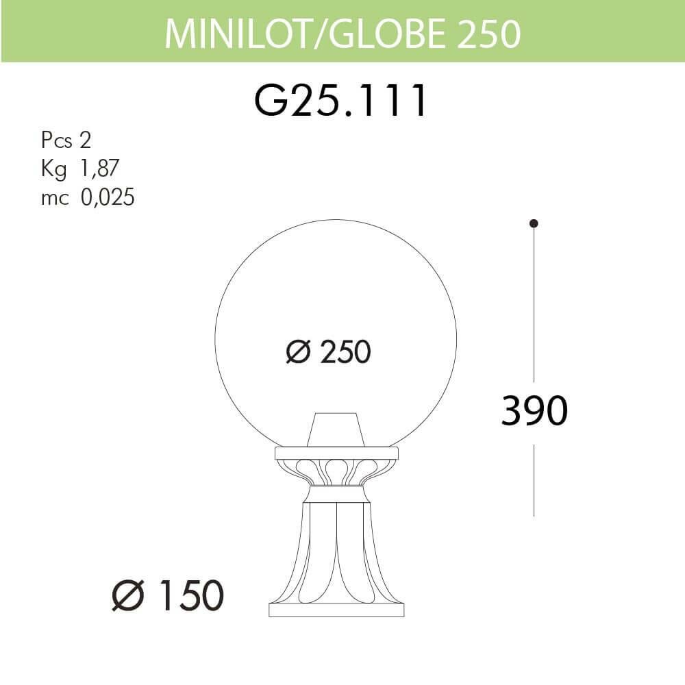 Светильники-столбики газонные Fumagalli серии GLOBE 250, модель GLOBE 250/MINILOT. Столбик MINILOT с уличным фонарем GLOBE 250. Используются для архитектурного и ландшафтного освещения в стиле "классика". Место установки уличных светильников - перила лестниц, столбы заборов, колонны, тумбы, подпорные стенки, стилобаты, ландшафтные композиции в парках и скверах. В общем, там, где светильник находится на каком-то возвышении, тумбе или подиуме. Изготовлены в Италии, по уникальным технологиям "Fumagalli" из современного композитного полимера RESIN. Этот материал в 5 раз прочнее металла, не ржавеет, не окисляется, не выгорает на солнце, его не нужно красить. Все светильники пыле-влаго защищены по стандарту IP65 (Пыленепроницаемые, защита от водяных струй с любого направления). В комплекте идут крепежи и закладные элементы. Рассеиватель выполнен из антивандального, не мутнеющего и не горючего PMMA (ПолиМетилМетаАкрилат).