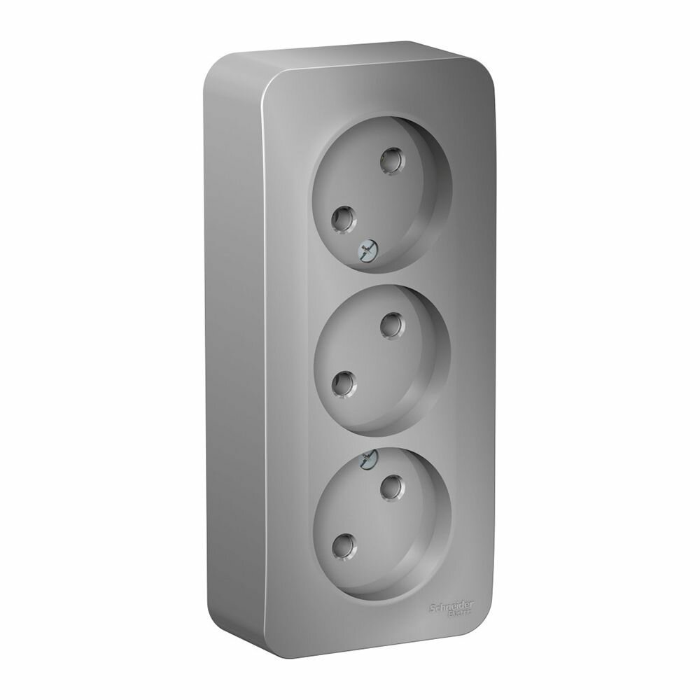 Blanca BLNRA000313 Розетка тройная с изоляционной пластиной (16 А в сборе открытая установка алюминий) Schneider Electric BLNRA000313 Blanca