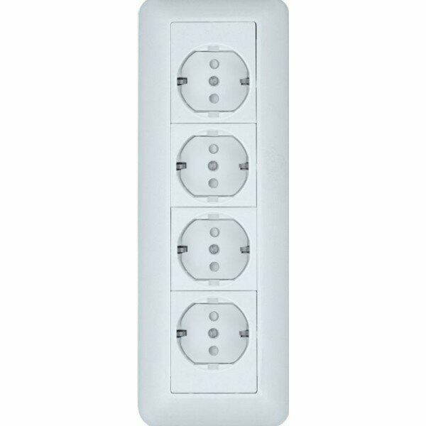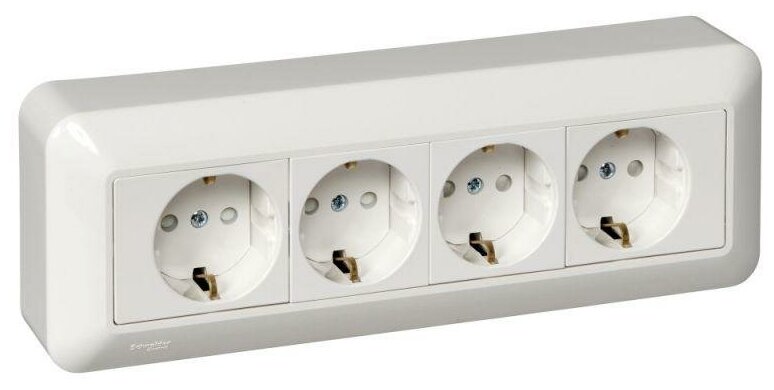 Прима RA16-411M-BI Розетка четверная с заземляющим контактом (16 А IP20 в сборе открытая установка шторки белая) Schneider Electric