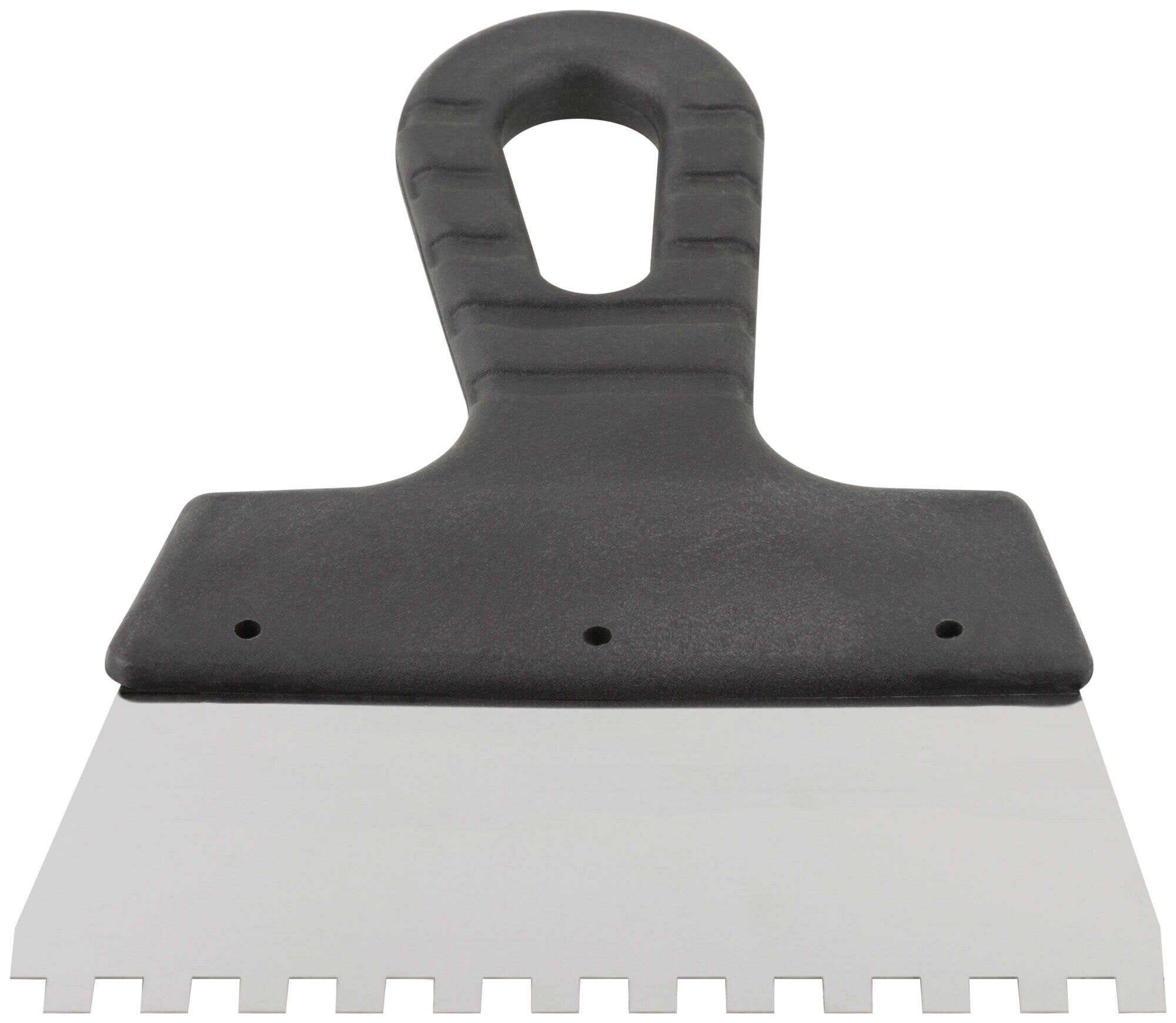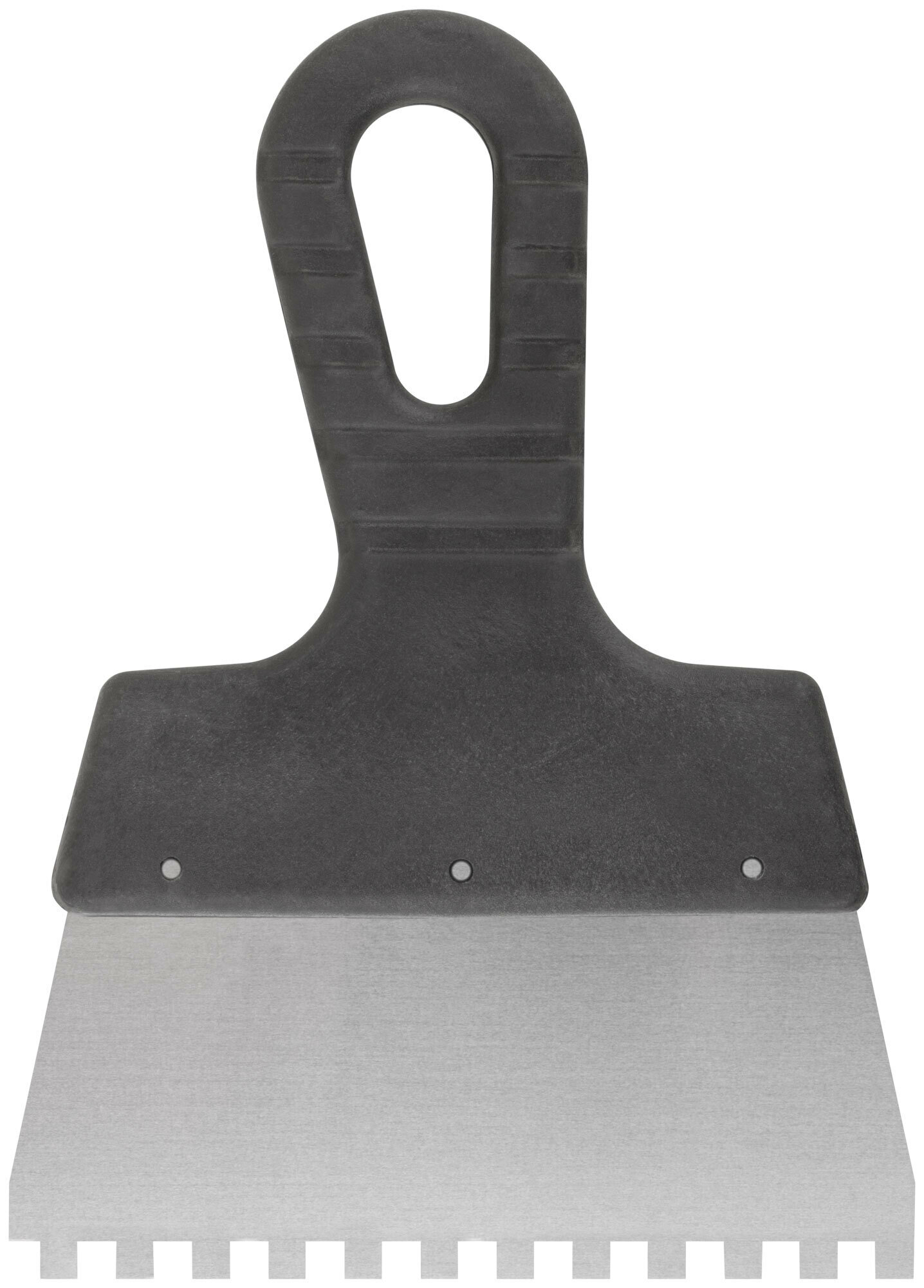 Зубчатый. Для работы на поверхностях большей площади. Материал: нержавеющая сталь, пластиковая ручка.