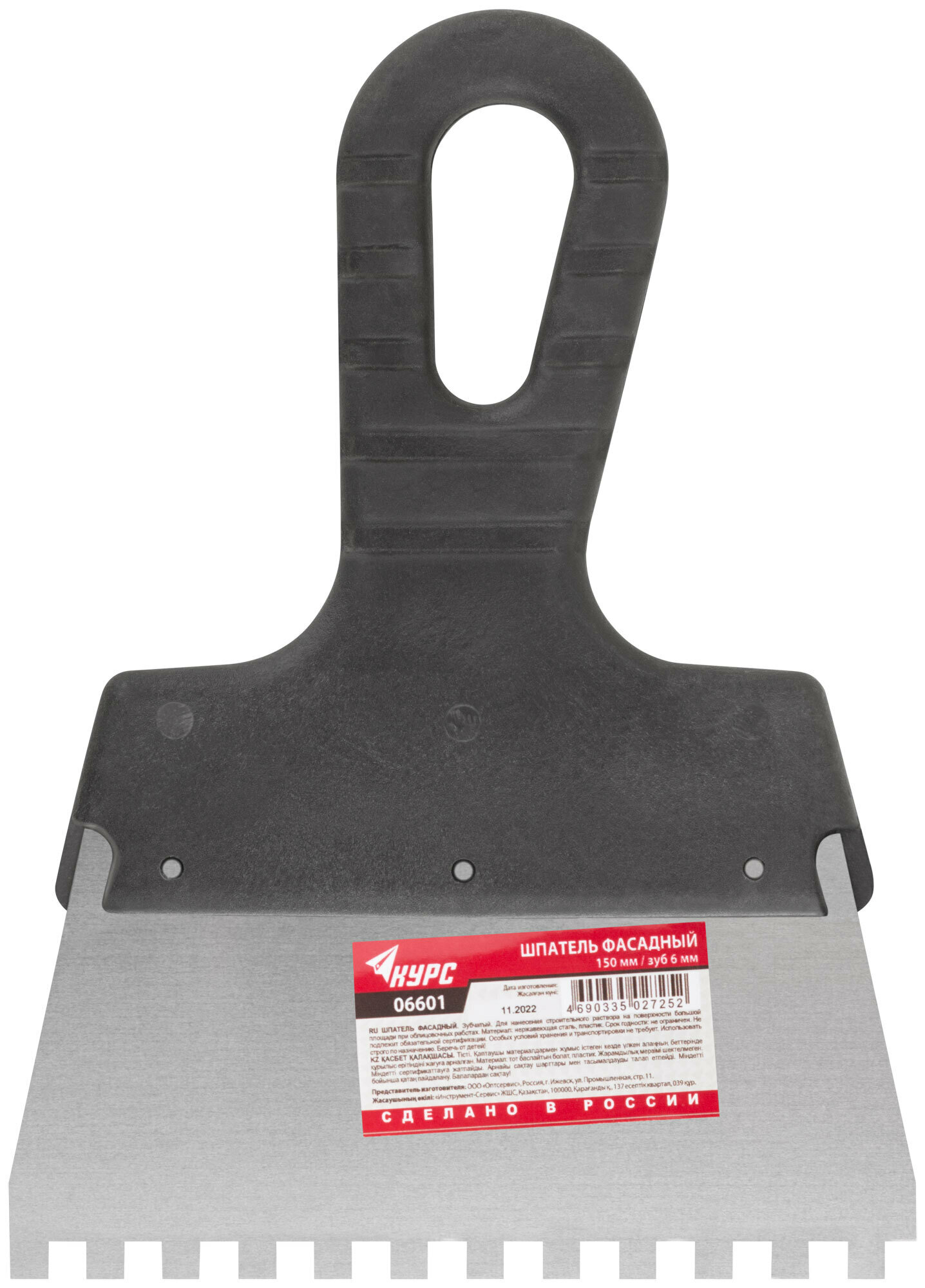 06601 Шпатель фасадный (нержавеющий зубчатый 150 мм / зуб 6 мм) Курс