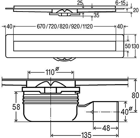 Комплектация: фланец с песчаным покрытием, решетка для укладки плитки, монтажные опоры, съемное устройство для защиты от неприятного запаха из системы канализации, возможность прочистки отводящего трубопровода, поворотный выпуск DN40, переход на DN50, сетчатый фильтр.