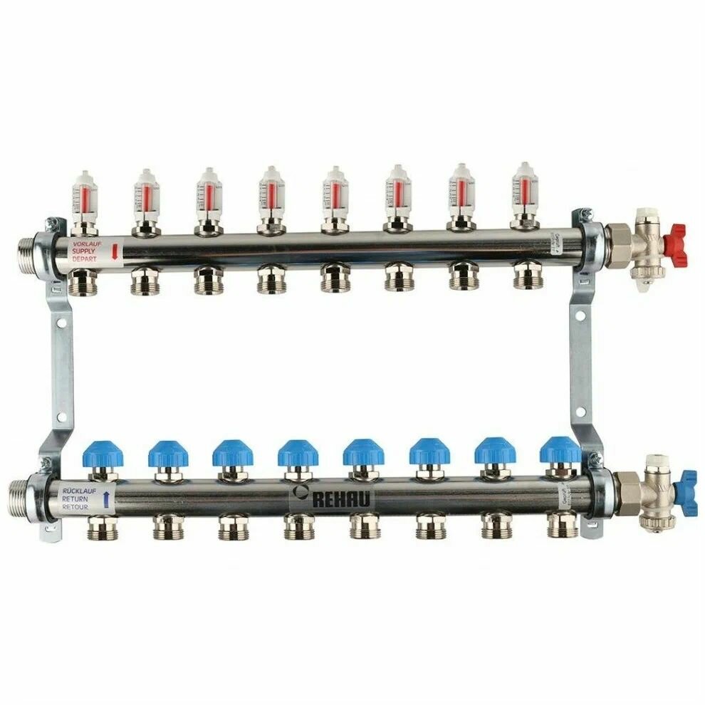 HKV-D 12080811002 Коллекторная группа (1" НР 8 x 3/4" НР расходометры ручные вентили нержавеющая сталь) REHAU