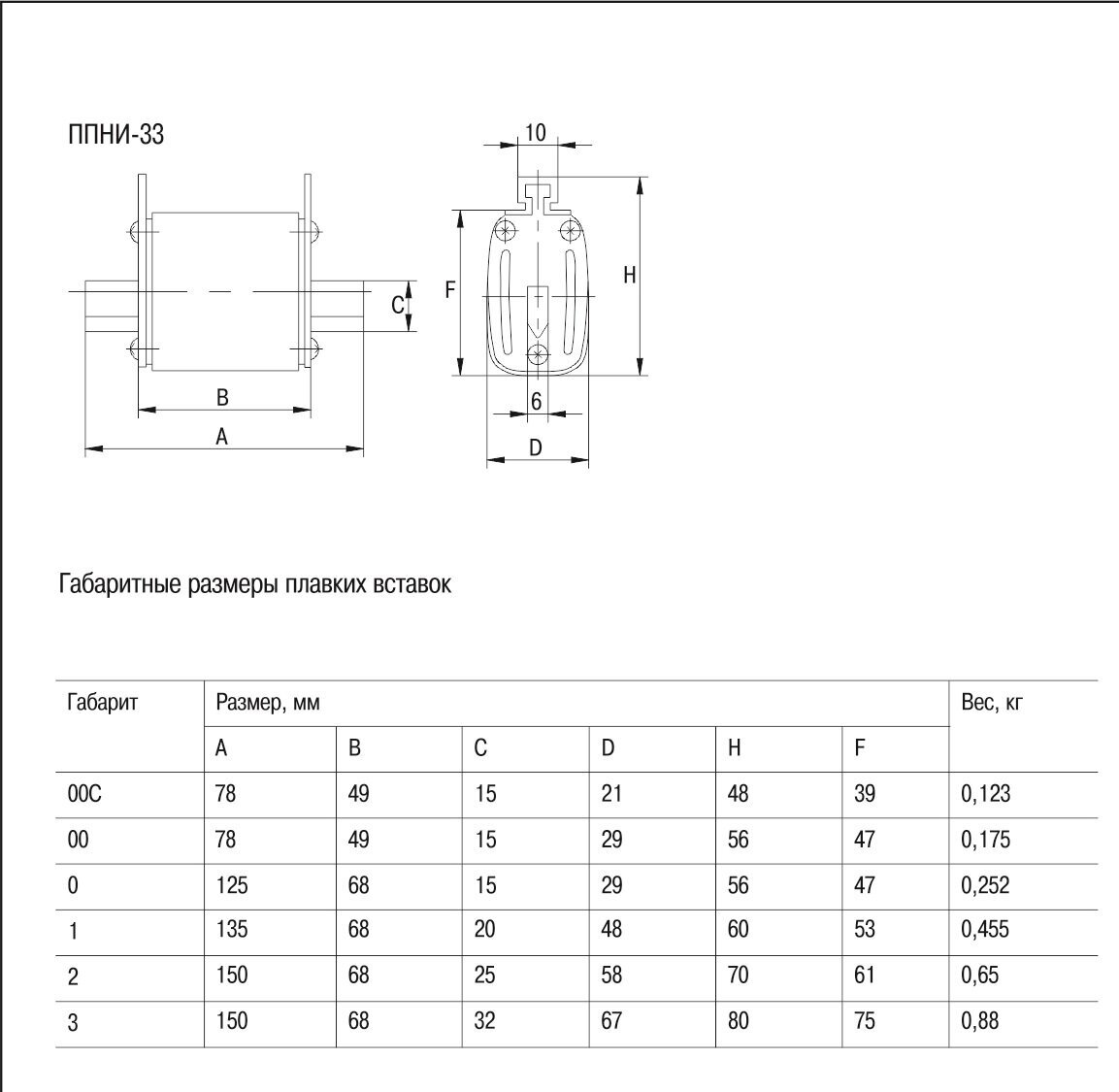 | Конструктивный размер (габарит) | 0 (NH0) |