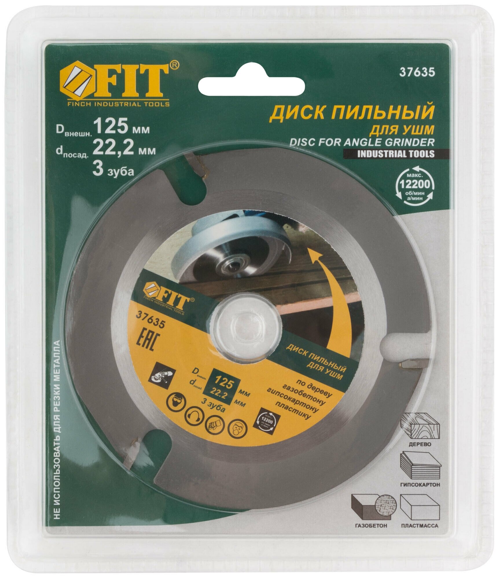 37635 Диск пильный по дереву 125 мм (зубчатый 3 зуба с карбидными вставками) FIT
