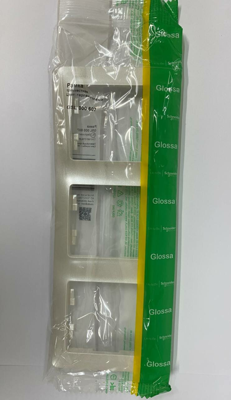 Glossa GSL000607 Рамка 3-постовая вертикальная (перламутр) Schneider Electric GSL000607 Glossa