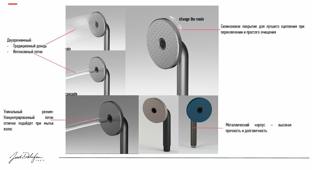 Nouvelle Vague E27796-BLV Ручной душ (2 режима серый/матовый черный) Jacob Delafon