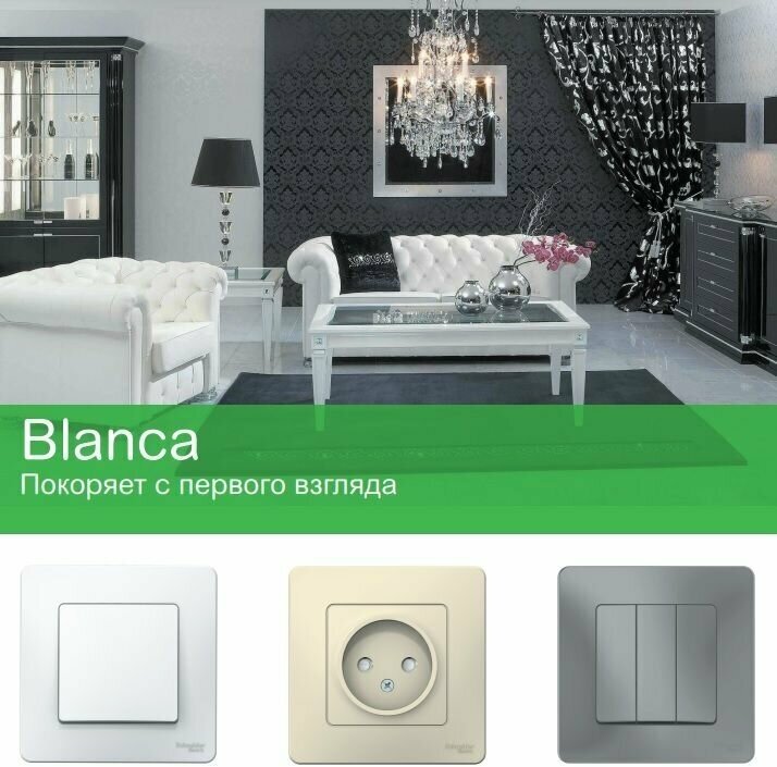 Изделия Blanca - это сочетание современного дизайна, созданного французским агентством Design Lab, и высокого качества материалов по доступной цене. Устройства выполнены в шести цветах: белый, молочный, алюминий, титан, антрацит и ясень. Лицевые детали серии сделаны из качественного термостойкого пластика с красивым глянцем поверхности, который достигается высококачественной полировкой пресс-формы.